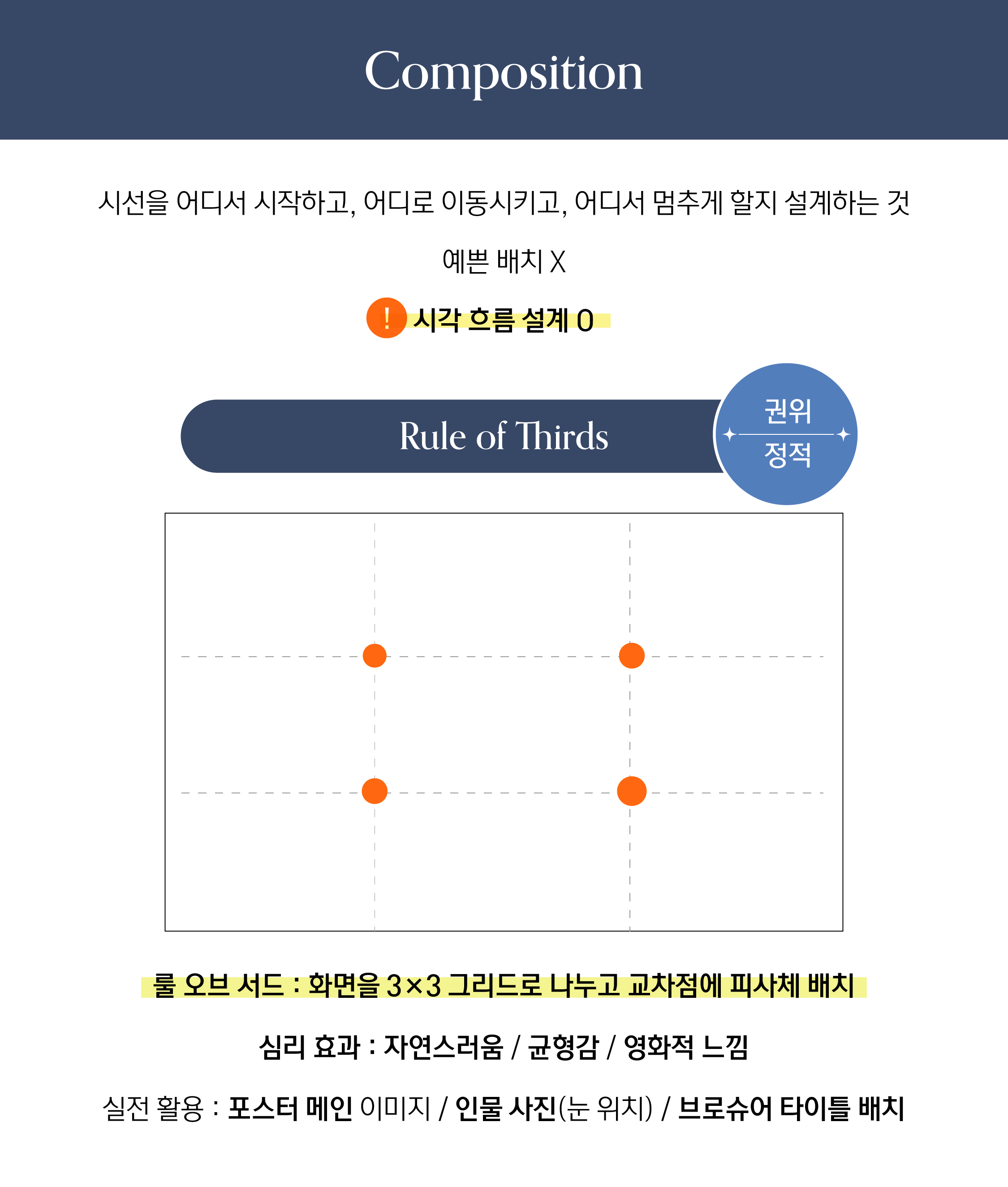 | [공부합시다] 사진, 디자인에서 자주 쓰이는 구도 공식 (1) | 2026.01.31 |